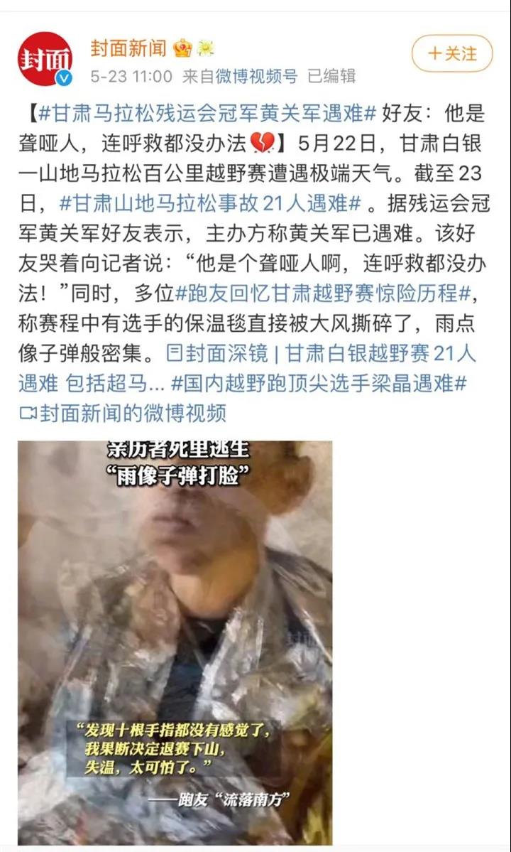 甘肃白银市的山地马拉松比赛,发生了一场悲剧,多达21名马拉松高手死亡。一共只有172人参赛,死亡率达12%。而且他们死亡的原因让很多人完全不能理解,居然是被冻死的,在5月底的初夏时分。