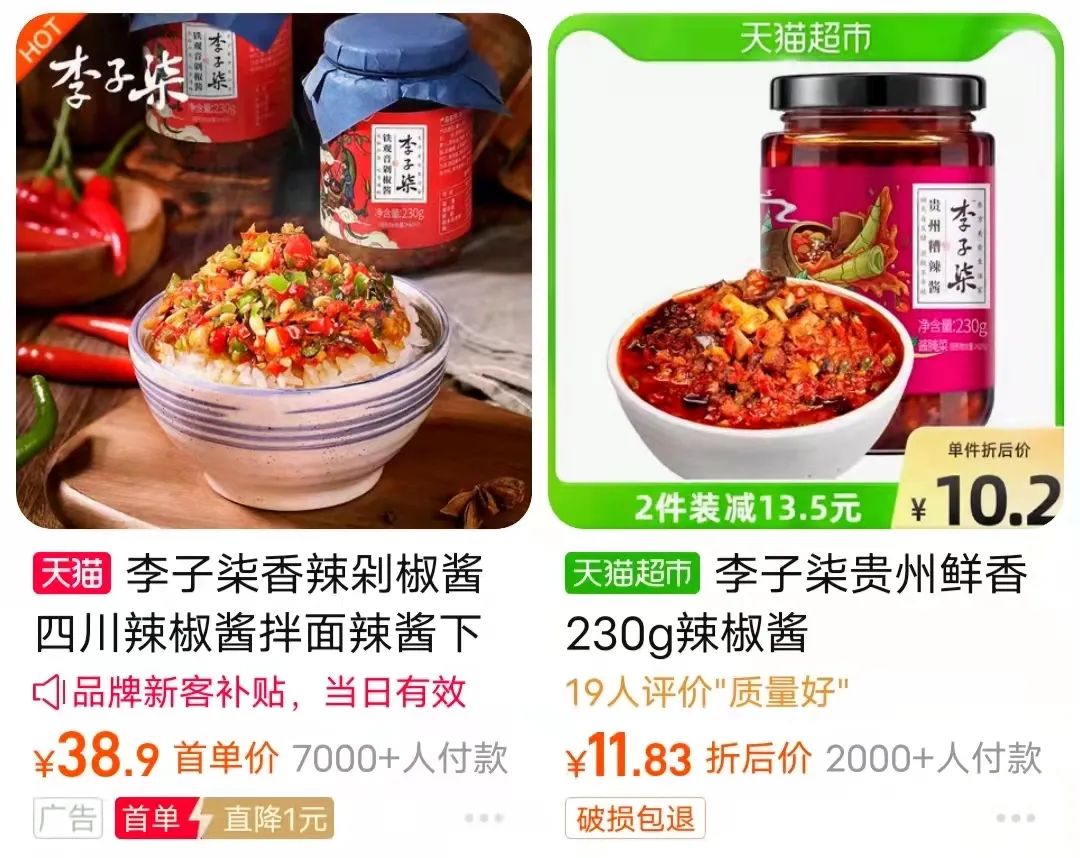 不過兩三年時間,李子柒、虎邦、飯爺、佐大獅等多個網紅新品牌應運而生,相繼從老乾媽手上搶走了年輕客群,一步步蠶食老乾媽的辣醬蛋糕。