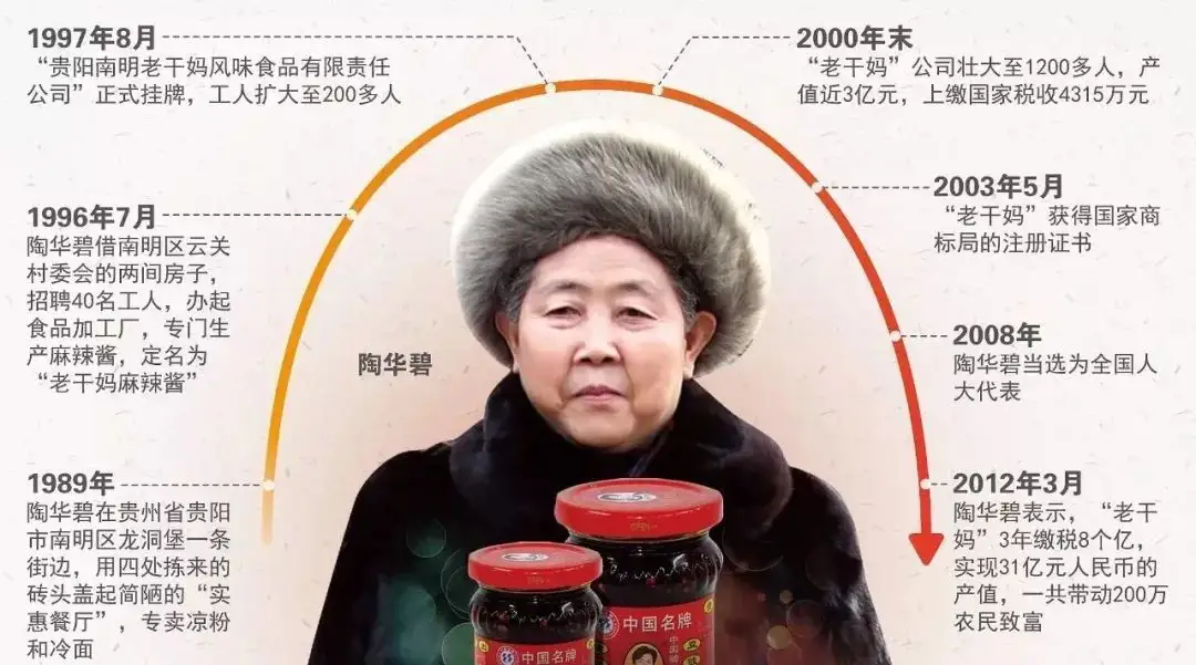 從租來的兩間房白手起家,到日產200萬瓶的辣醬帝國,老乾媽的發家,靠的正是陶華碧淳樸的作風和口口相傳的口碑。