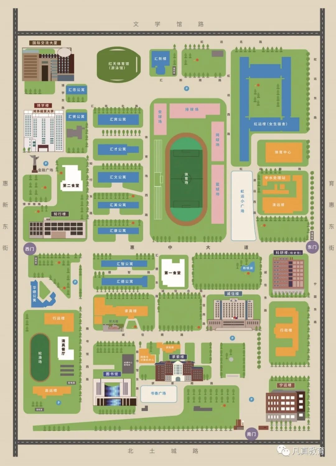 (贸大校园平面图,请注意右上角的虹远楼,来源:学校官网)