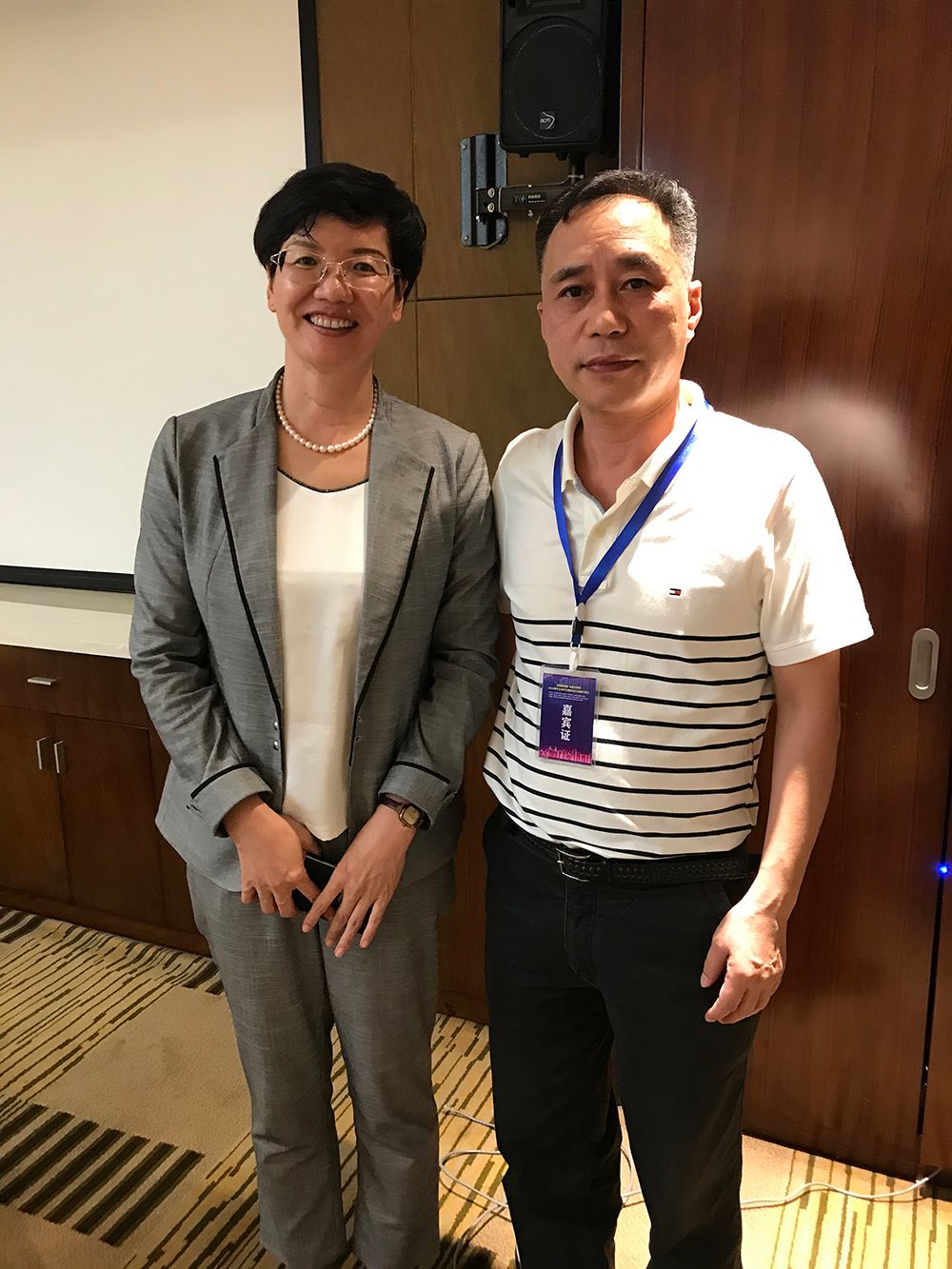 宁夏回族自治区党委宣传部副部长、自治区政府新闻办主任杨柳(左)与本报总编辑禤志文