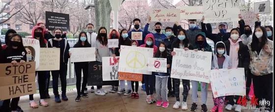资料图:4月11日,纽约长岛北岸的华裔学生举行集会抗议反亚裔仇恨犯罪。(纽约《侨报》)