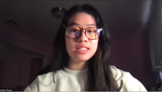 圣玛利诺高中生Amber Phung分享自己的经历。(视频会议截图)