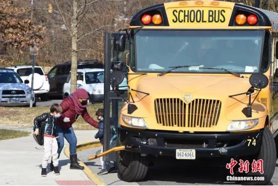 资料图:自3月1日开始,美国弗吉尼亚州阿灵顿县公立中小学允许学生自愿选择返校复课。当地学校目前采取“3天网课+2天到校”等不同形式,让校园恢复到“半开放”状态。中新社记者陈孟统摄