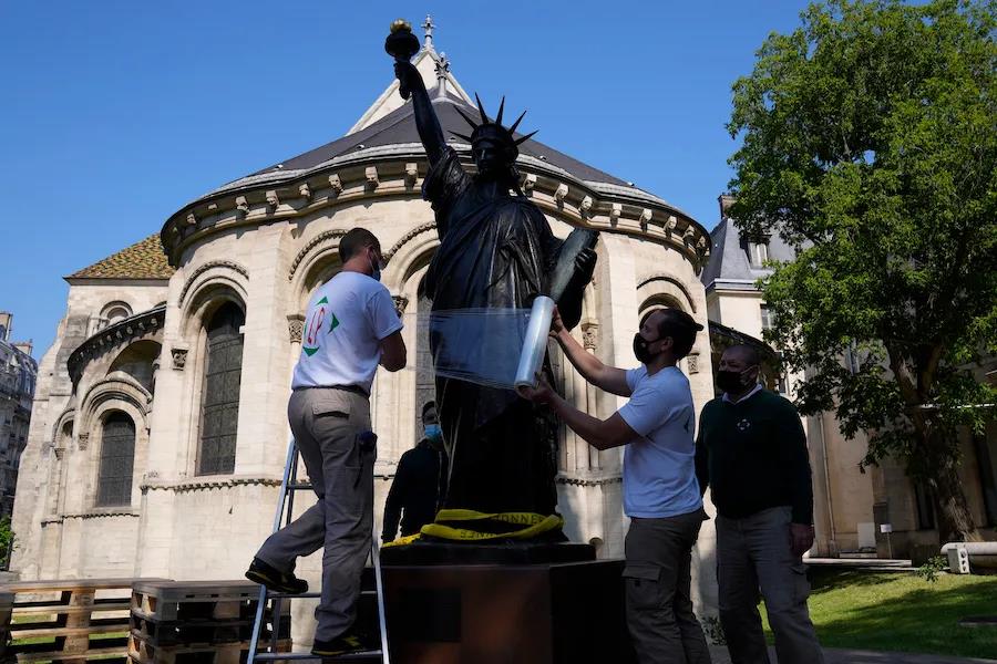 矗立在纽约港的自由女神像是人类争取自由、反抗暴政的象征,每年都激励着成千上万珍视理想、努力奋斗者踏上旅程体验她的辉煌并追求属于自己的幸福。自由女神像是法国送给美国的礼物,也是法国与美国友谊的产物。时隔一个多世纪,今年6月法国人民将第二座小型自由女神像运往美国,参与7月4日的独立日庆祝活动,并计划将雕像长期放在法国驻美大使馆官邸内。