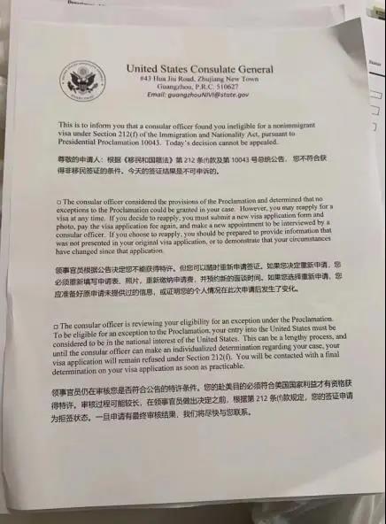 只要学习背景触碰到他们过于敏感的神经,签证官就会以10043号行政令“简单粗暴”拒绝签证