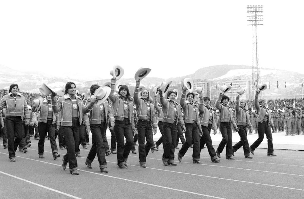 在1980年纽约普莱西德湖举行的冬季奥运会上,美国运动员首次被问到他们在开幕式上想穿什么样的服装。结果当他们入场时佩戴了美式牛仔帽。是的,在美国人人都是牛仔,Yee-haw!
