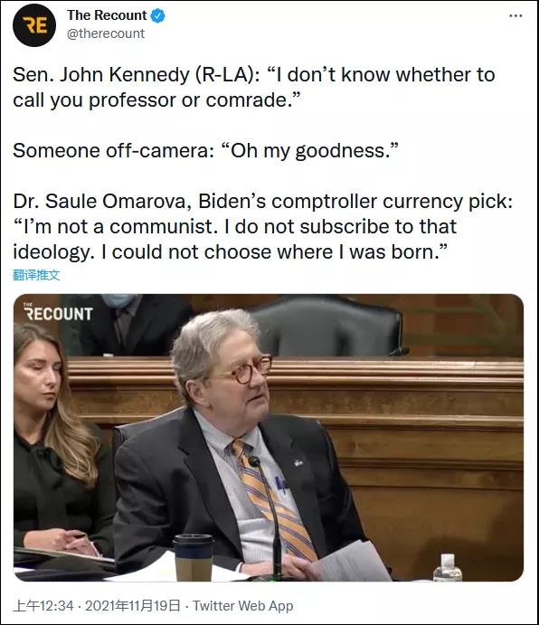 除此之外,奧瑪洛娃的個人經歷也成為了被批評的重點。有共和黨參議員就在聽證會上提到了她出生於蘇聯的往事,並質問她本人:“到底該叫你‘教授’還是‘同志’(comrade)?”