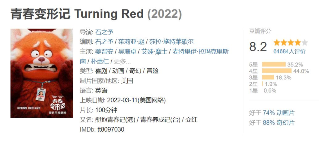 因为疫情原因,动画电影《青春变形计》(Turning Red)由原定的院线上映转至流媒体,不过就是短短的几天时间,这只红棕色的小熊猫迅速成为了社交媒体上热度最高的话题之一。