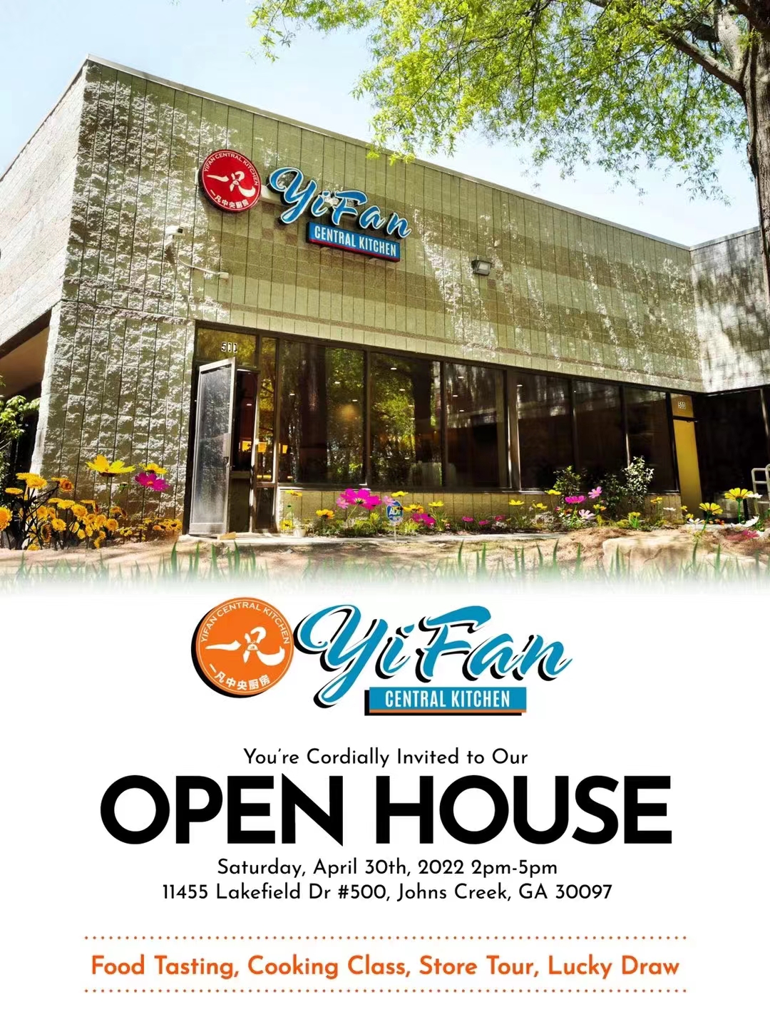 【美中報導讯】亚特兰大朋友们翅首以待的“一凡中央厨房”(Yi Fan CENTRAL KITCHEN),将于4月30日(星期六)下午2时至5时举办Open House,欢迎各界朋友们光临。