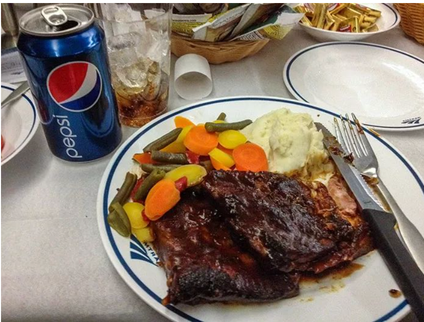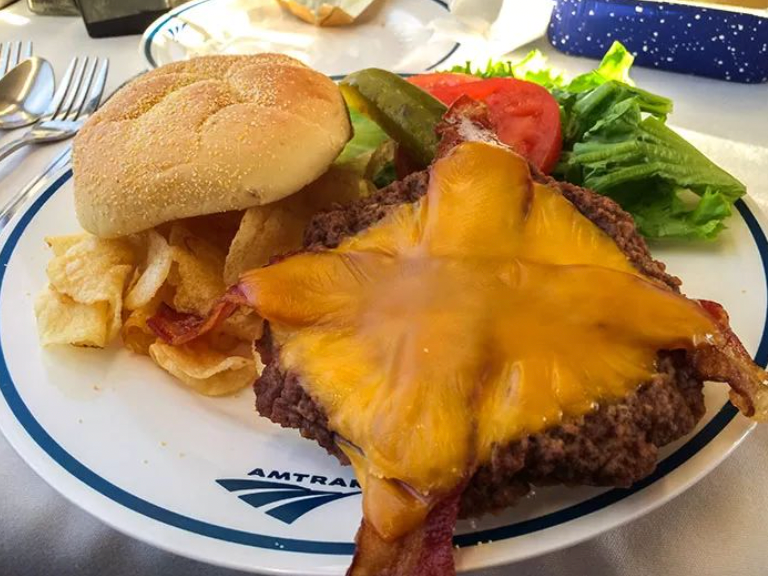 我点了一份烤肋排,身边坐着一个不太喜欢说话的中年男子。1个小时后,火车停靠内华达州一座小城,坐我旁边的中年男子被带着手铐带下了车,据说罪名是非法持枪。。。