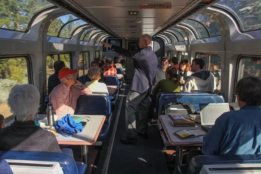 拥有巨大落地窗的观景车厢,已经基本坐满。