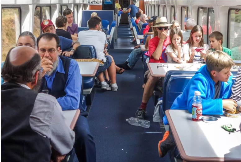 在餐车里遇到了几个坐火车旅行的阿米什人。