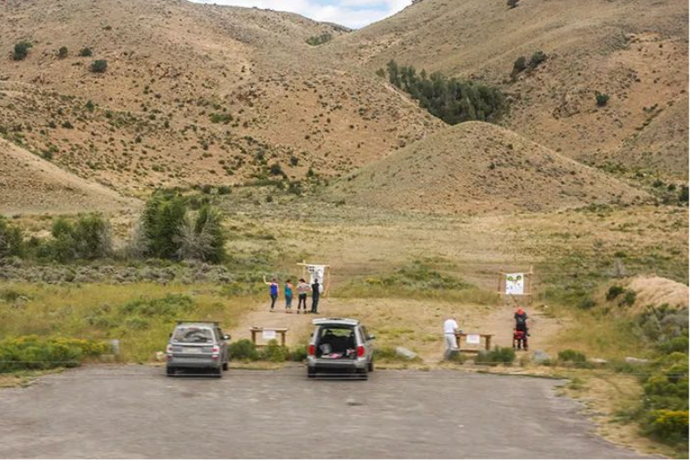 火车经过一片深山中的靶场。