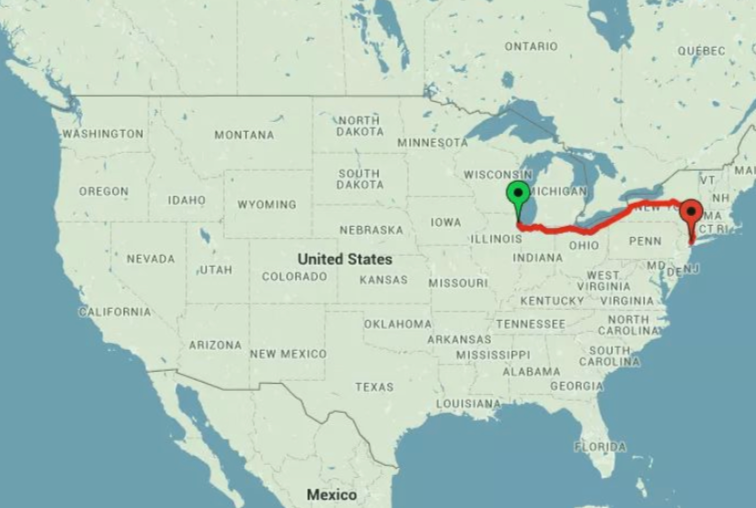 列车在进入纽约前,会经过伊利诺伊、印第安纳、俄亥俄和宾州。
