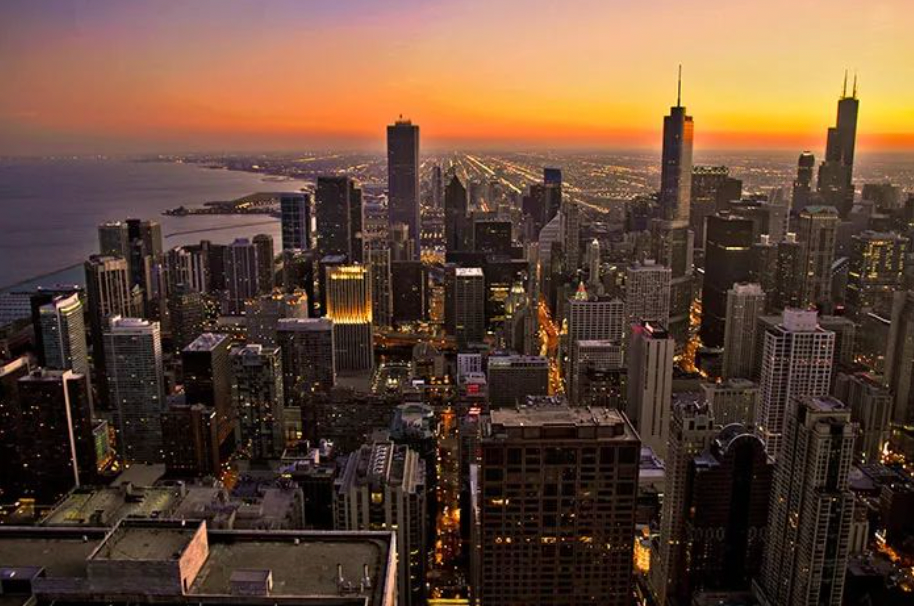 我在芝加哥这座美丽的城市停留了1天,这是从Hancock大厦俯瞰到的市中心: