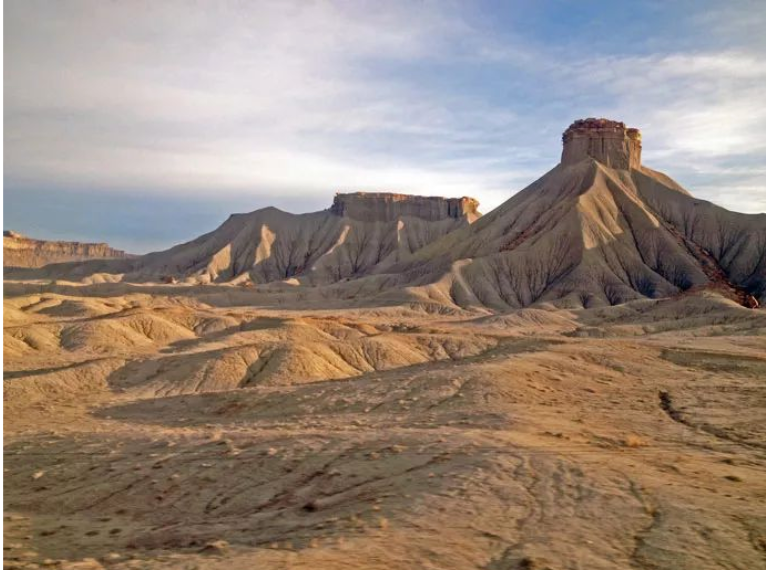 火车经过的线路,正好和布克陡崖观景台(Book Cliffs)平行,可以看到很多造型独特的石崖。