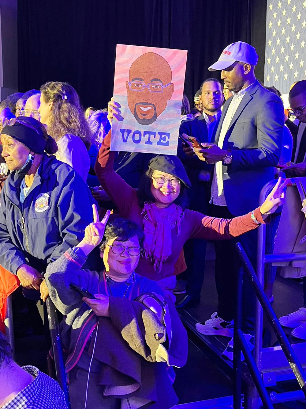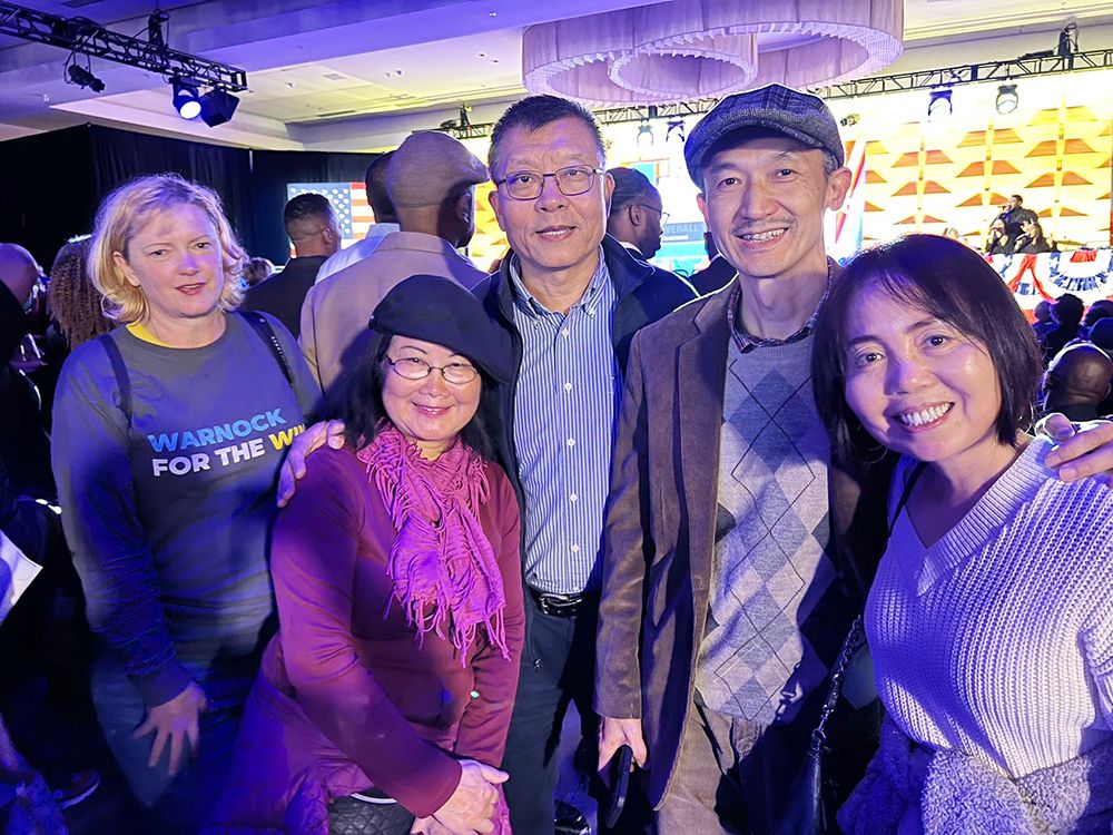 民主党沃诺克Raphael Warnock成功连任 佐治亚洲华人亲临现场为他打气(美中報道)