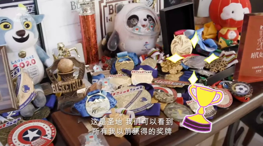 谷爱凌在9岁就包揽全美滑雪比赛少年组冠军,13岁参与成人比赛,14岁就完成了50块金牌的里程碑。