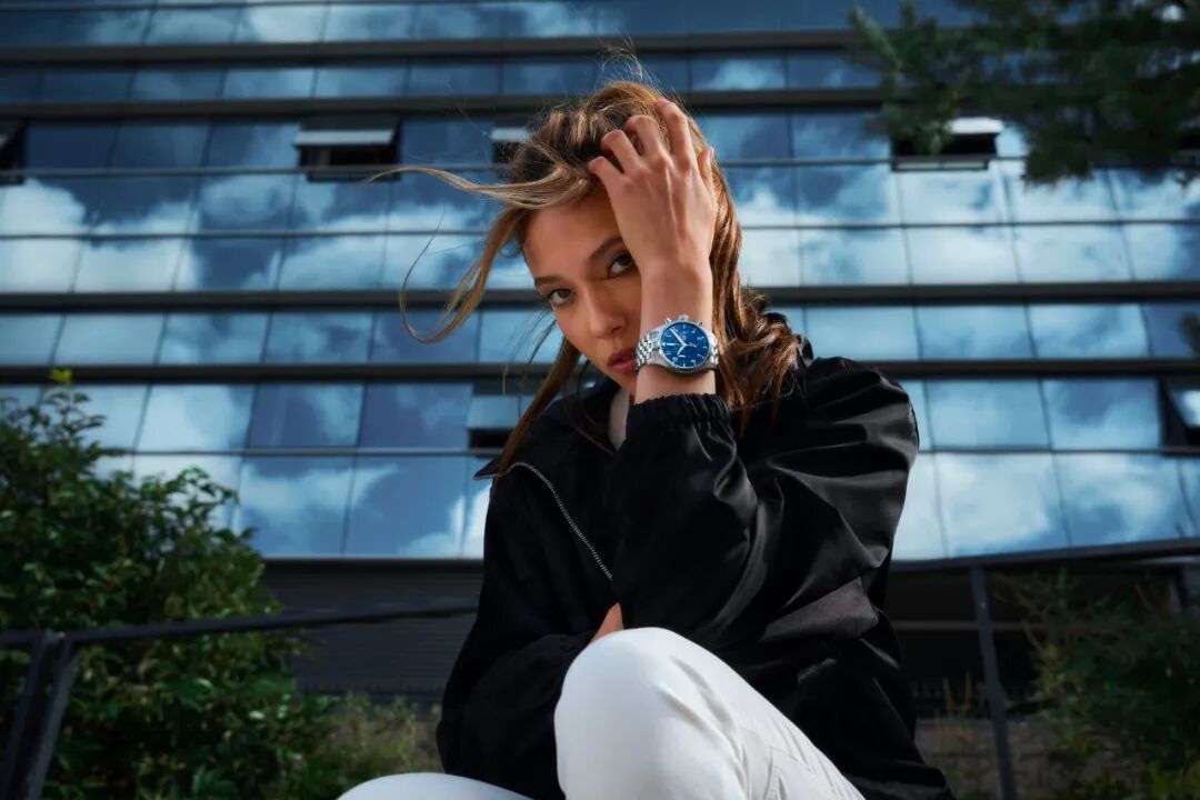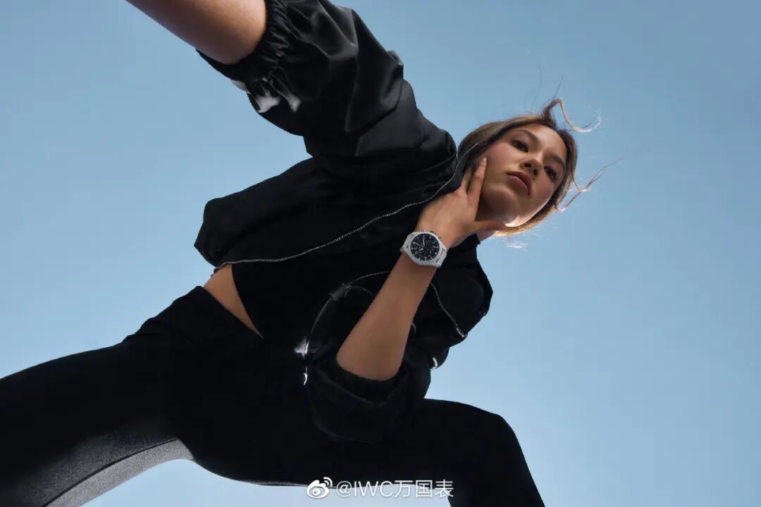 她还上手了白陶瓷制作的飞行员TOP GUN计时腕表“太浩湖”特别版,更有飒爽气质。