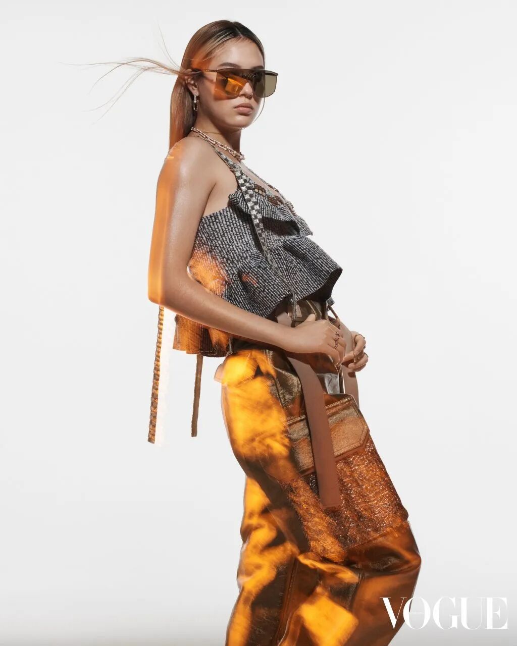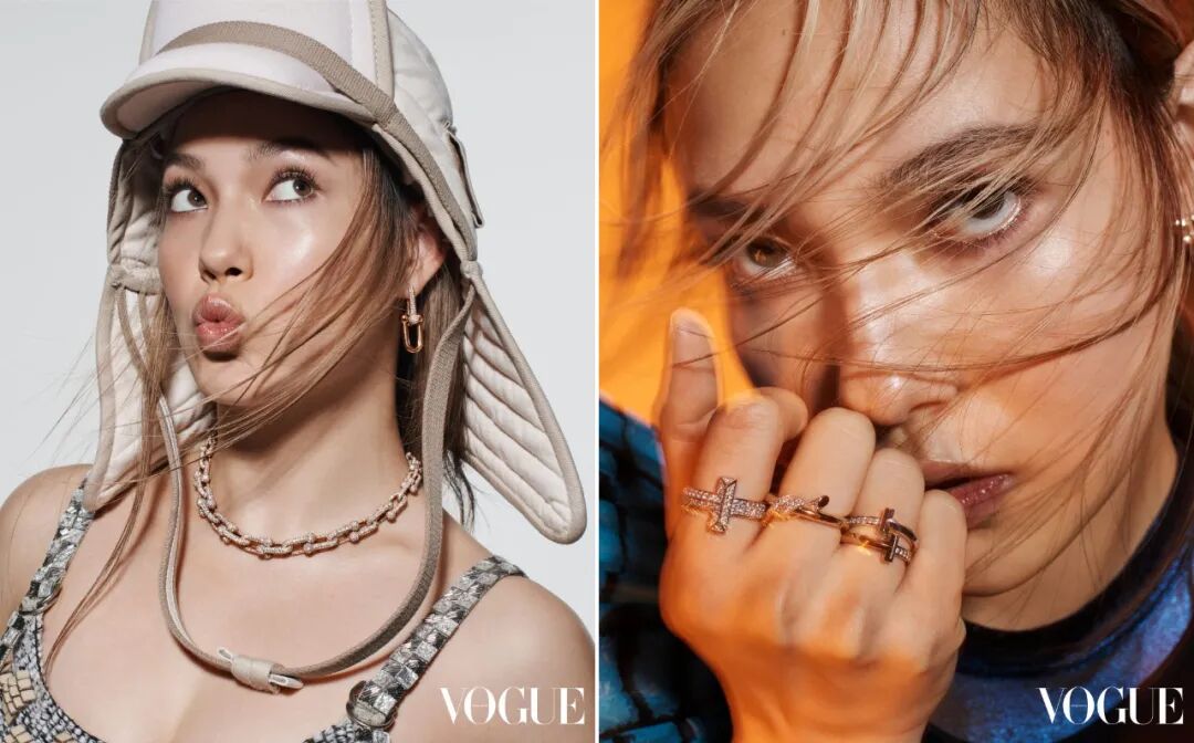 在Vogue里也是为Tiffany疯狂带货,分别佩戴了HardWear系列的Link耳环与Graduated Link项链,画风柔中带刚;T1系列戒指和Knot Double Row戒指,个性又闪耀。