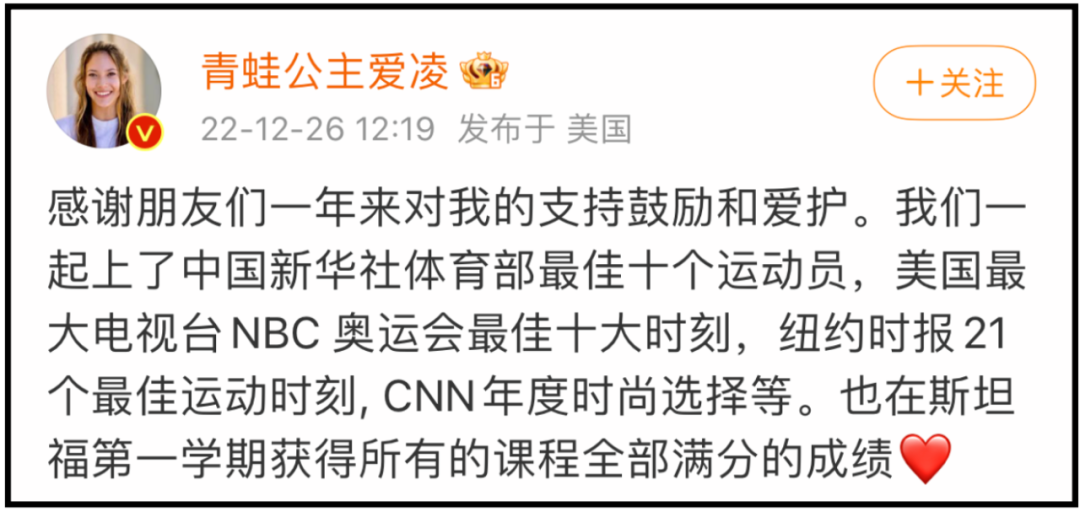 不管怎么说,谷爱凌这份年终总结已经华丽到没谁了,有人质疑她的光鲜生活,也有人觉得她靠自己实力,值得拥有一切。大家觉得呢~(原创 范主 商务范)