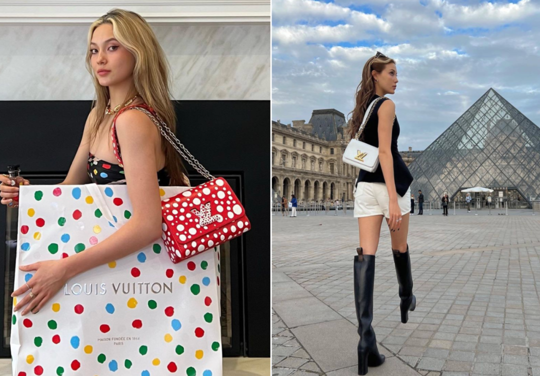 平时LV包包不离手,经典的Twist就有好几只,圣诞节又晒了一只草间弥生全新合作款(左),价格近4万。