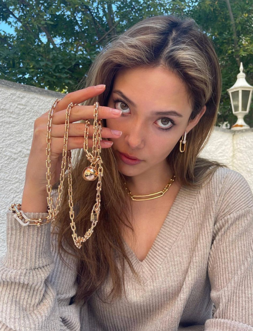 玩起叠戴相当熟练,用HardWear系列Graduated项链搭配吊坠项链,欧美风十足。