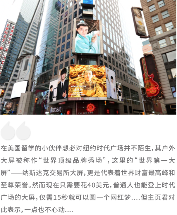 虽然只花了599,露了15秒的脸,但能上时代广场还是一件很值得炫耀的事情。