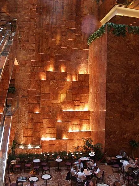 这种风格将在特朗普大厦中得到最充分的体现。悬垂的阳台和悬空的人行道。她用粉红色的大理石和金箔填满了新巴比伦风格的特朗普大厦。而其中每一块粉红色大理石都是伊万娜在意大利一块一块选出来的。