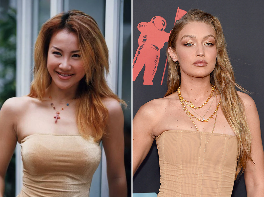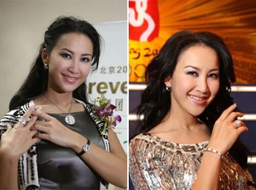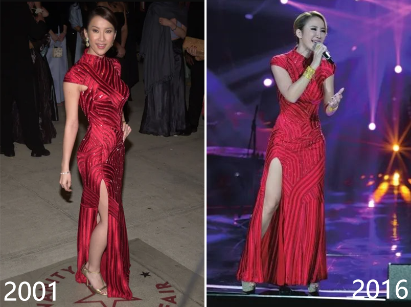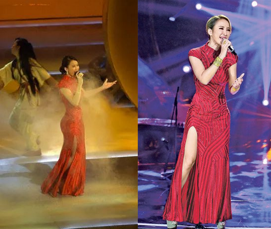 右:十五年后,李玟在《歌手》里再次上身红旗袍