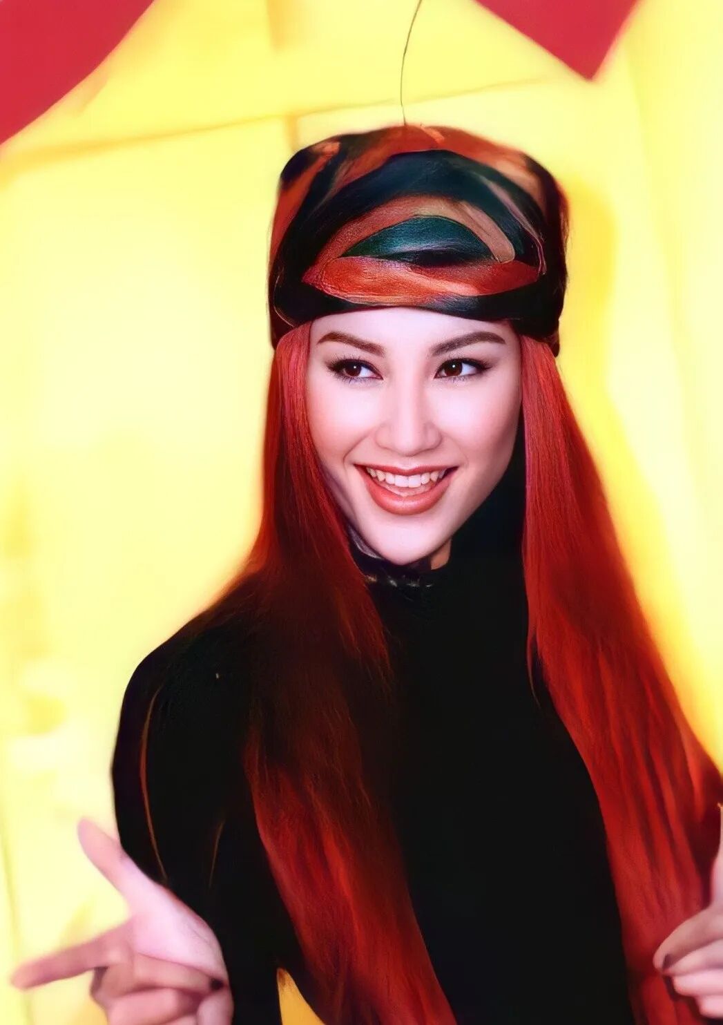 作为百变天后,李玟也有过黄发、挑染,以及黑发时期,不过在很多人心里,能代表她风格的,只有那一抹“CoCo红”~
