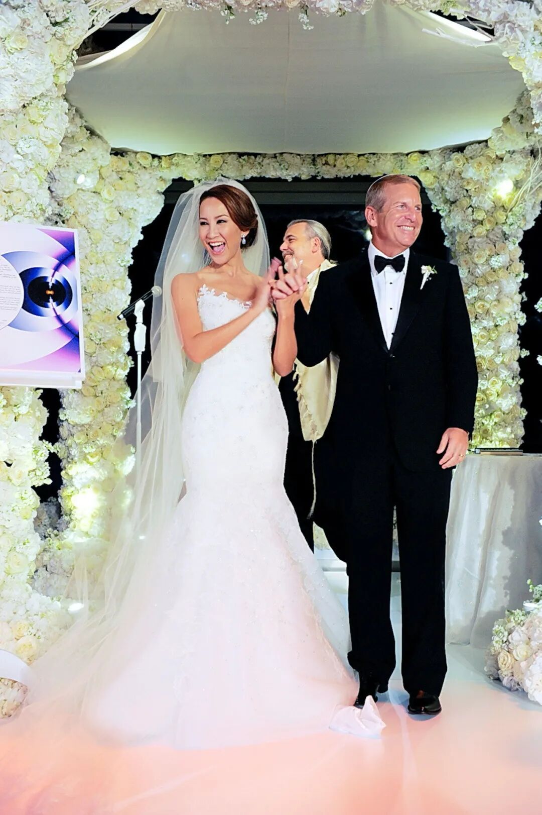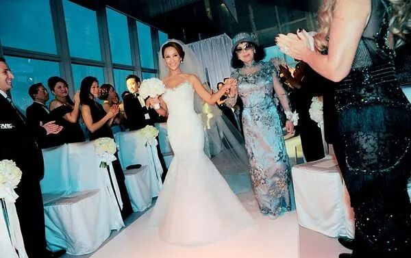 那天她穿着Vera Wang设计的婚纱,经历8年爱情长跑,步入婚姻殿堂↓