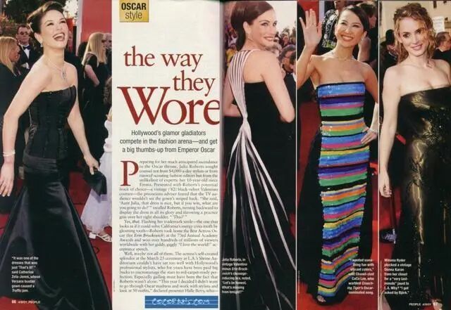 这一身,也让她登上了当年欧美一线时尚大刊。和茱莉亚罗伯茨、凯瑟琳泽塔琼斯等好莱坞A咖明星同台PK的李玟,气场丝毫不输人。