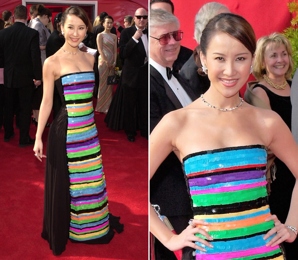 范主印象最深的,要属2001年奥斯卡红毯上,她这条CHANEL“彩虹裙”。搭配简约点睛的珠宝,美丽优雅的同时,更不失个人的俏皮风格。