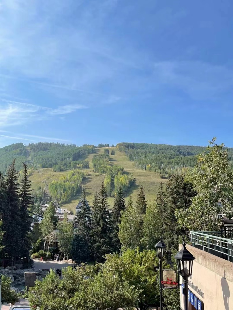 威尔市Vailcity:洛基山脉金三角,世界顶级的滑雪度假村胜地。虽然不是冬季,但滑雪道依稀可见。