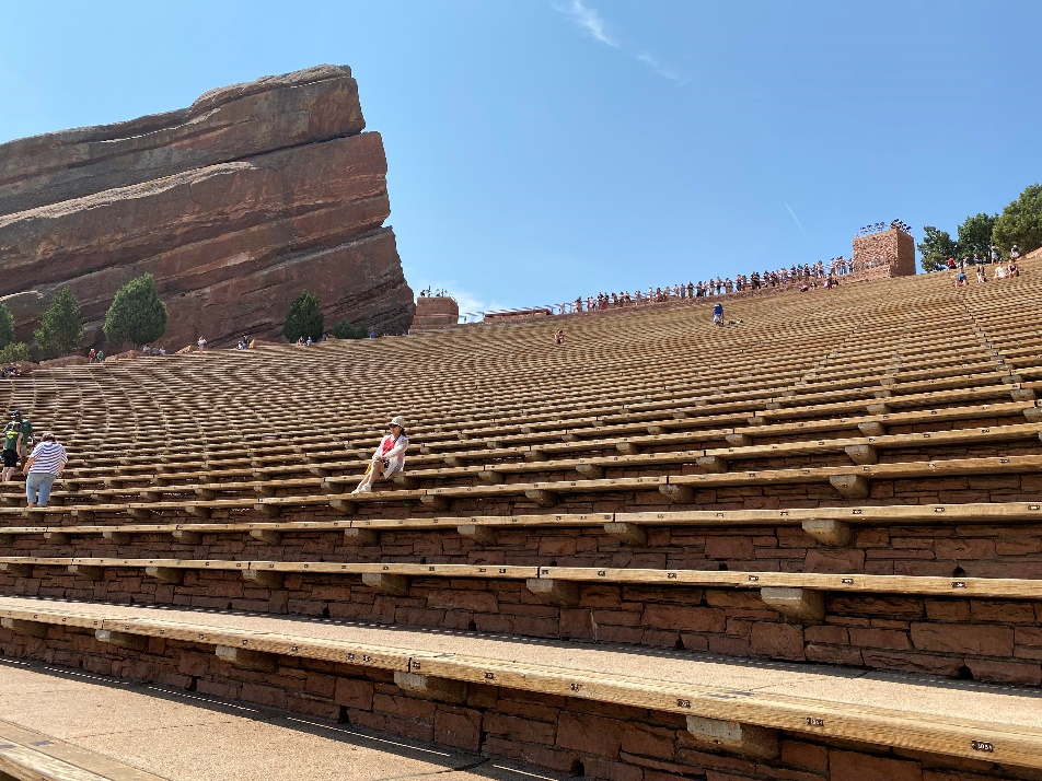 红石露天剧场RedRockParkandAmphitheater是位于洛基山脉半山的众多著名歌星放歌的露天摇滚音乐表演场。剧场露天修建,被林立的气势恢弘的红色巨石环绕。