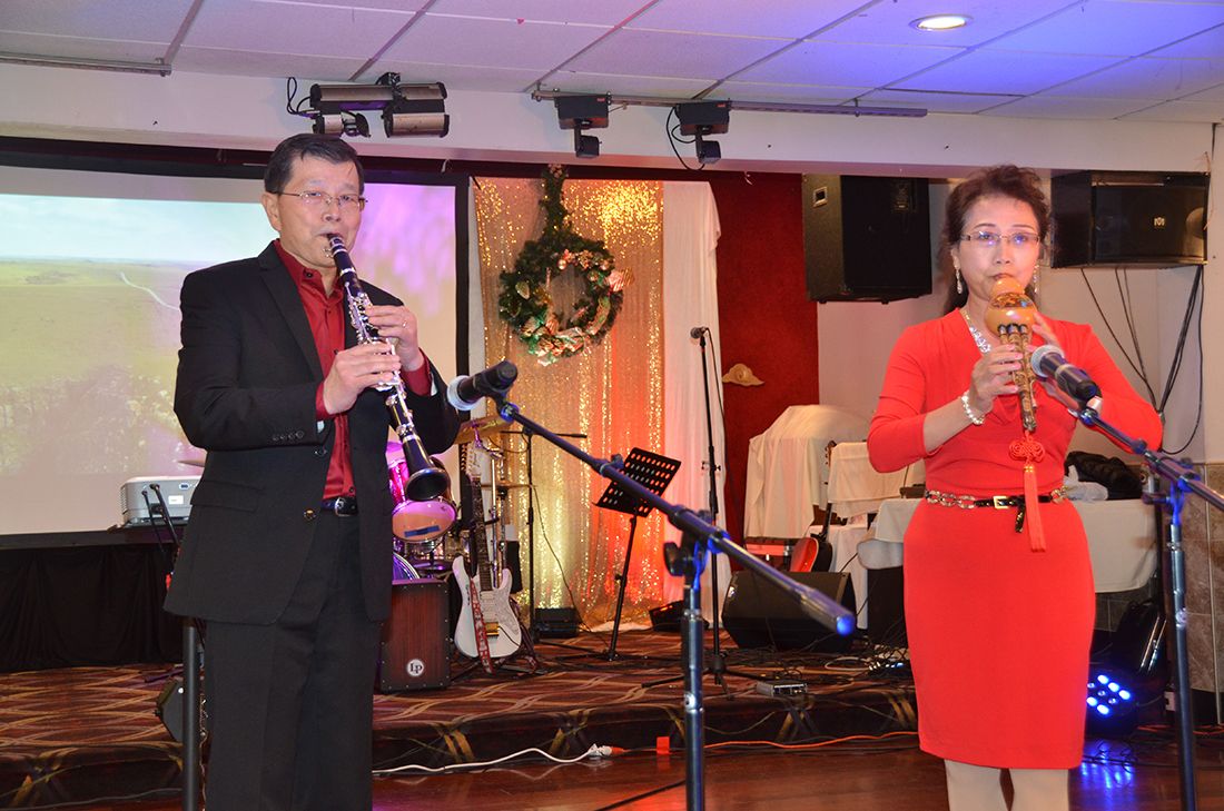 在当天的晚会上,张世杰理事长和李晓松会长先后致词,并向获奖理事、赞助商和义工们颁发了感谢牌。主办单位还向与会宾客们表演了精彩的文娱节目:候鸟乐队的歌曲;王海燕的舞蹈;唐学新、张焱夫妇的演奏;中山医、广医团队的粤语串烧;冯健的小提琴独奏;艾地、刘关山的脱口秀;林医生女儿林美安、林丽安的演唱及古筝等,均获满堂彩。