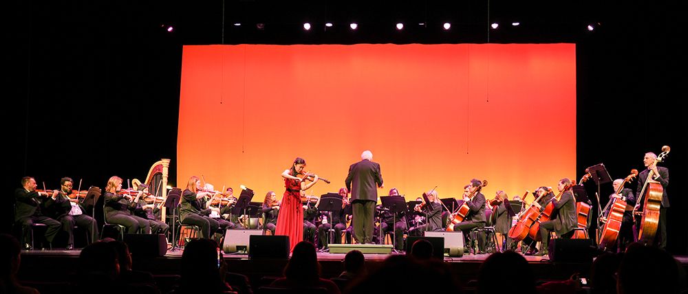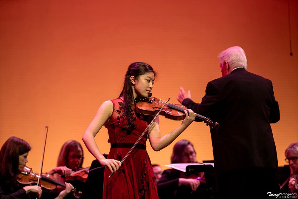 晚会上半场是由香港在国际上已经展露头脚的著名小提琴家谭允静(Hannah Tam)和Johns Creek交响乐团合作的著名小提琴协奏曲《梁山伯与祝英台》。年仅17岁的谭允静之前已在多个国际音乐大赛上夺冠,其中包括蒙特利尔国际音乐大赛和意大利波斯塔奇尼音乐大赛。谭允静多次以小提琴独奏家的身份到日本、芬兰、意大利、德国、奥地利、捷克、加拿大及美国表演,获得国际音乐界的盛赞与殊荣。晚会在优美音乐中开始,把在场观众带入那优美的爱情故事之中,仿佛看到两只蝴蝶翩翩起舞,在爱的旋律中飞入天空。音乐结束之后,观众们热烈的掌声使Hannah不得不一次又一次的为观众谢幕。