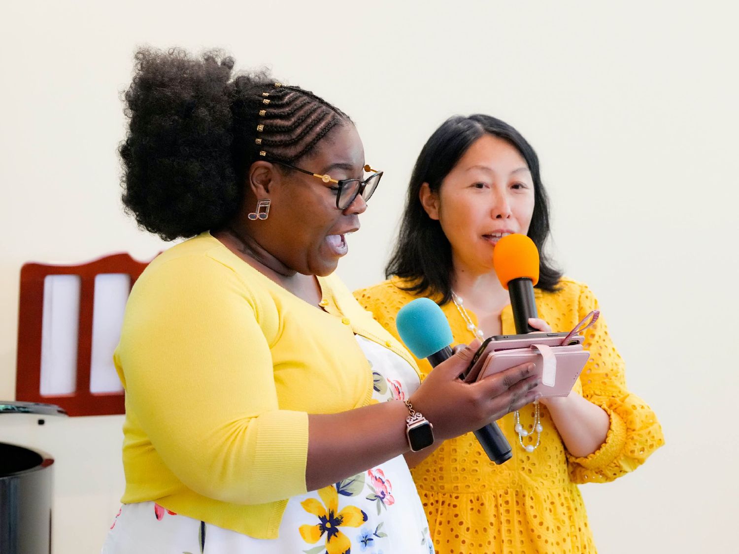 王美玉教授来自中国云南艺术学院,被誉为彝族歌后,从北卡专程前来。音乐会隆重推出了王美玉作词作曲的《天上的月琴》和《哈尼迎宾曲》,她为大家激情演唱。此外,还有专业音乐人田栗丰的作品《万物有定期》(田栗丰词曲,牧田诗歌演唱)和《最美的家乡》(Fanny Crosby词,邹晶/田栗丰译,田栗丰曲,牧田诗歌演唱)。这些歌曲蕴含着中华文化的传统,有的描写民族风情,有的融入了基督教文化,以华语和西乐相结合的形式抒发海外华人的情感,是中华文化传承的艺术形式,也是多元文化交织融合的典范。音乐会的特邀嘉宾还有来自朱临湘所在学校的年度优秀教师,一位学中文的非裔学生登台演唱她自己写的中文歌,展示了这种文化交融的效果和魅力。