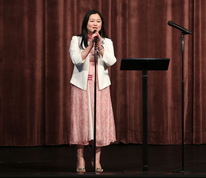 接下来播放的毕业班和AP提高班班级的视频令在场的观众很感动,一张张照片,一幅幅画面记载的是莘莘学子们一路学习中文的努力,流露的是班级浓浓的的师生情和同学情。来自马立平九年级的曾肇言同学和暨南十年级的钱璐欣同学代表全体毕业生发表感言。他们谈到数年学习中文的辛苦和坚持走到今天的收获。他们无比感谢所有老师的辛勤付出,无比感谢家长对他们的付出鼓励与陪伴,无比感谢亲如兄弟姐妹的同学们。他们会想念中文学校,也真心希望学弟学妹们珍惜在中文学校的每一天,学好中文!