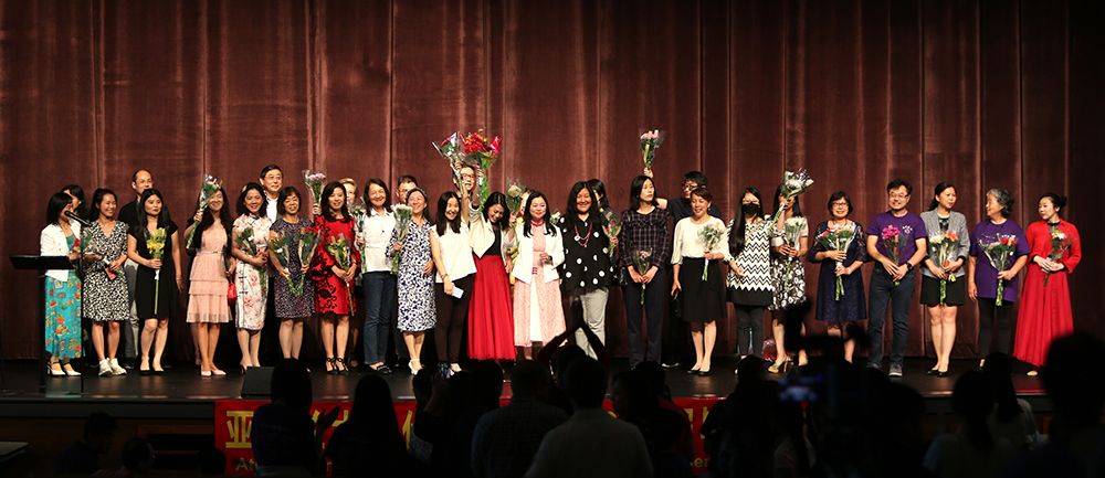 随后各分校校长们(北校林岚校长、西校常燕佳校长、南校郑晓瑜校长)宣读了本学年校长奖和校级奖获得者学生名单,一群群手捧金杯和银杯的同学们纷纷走上舞台与老师们合影留念,个个脸上洋溢着欢乐的笑容!为自己这一年在中文学习中取得的成绩感到骄傲与自豪!