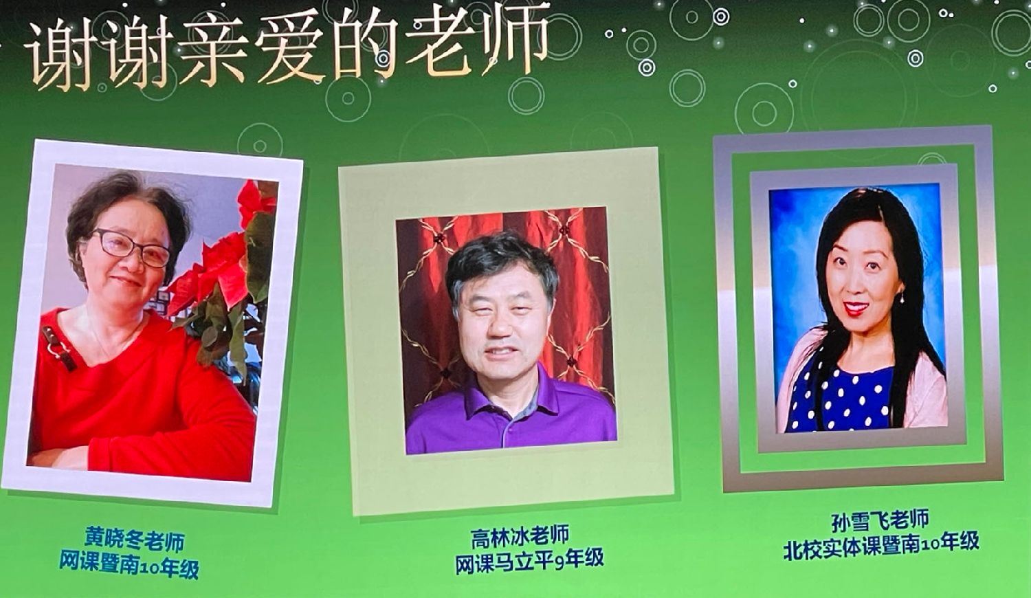 最后,在一首《感恩的心》音乐声中,即将离校的毕业班和AP提高班的学生们手捧鲜花走上舞台,为老师们献上他们衷心的感谢!