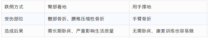 用手撑地往往损伤的是腕关节,顶多导致尺骨远端或桡骨远端骨折,造成的伤害以及治疗护理的难度要小得多,基本不会发生致命并发症。