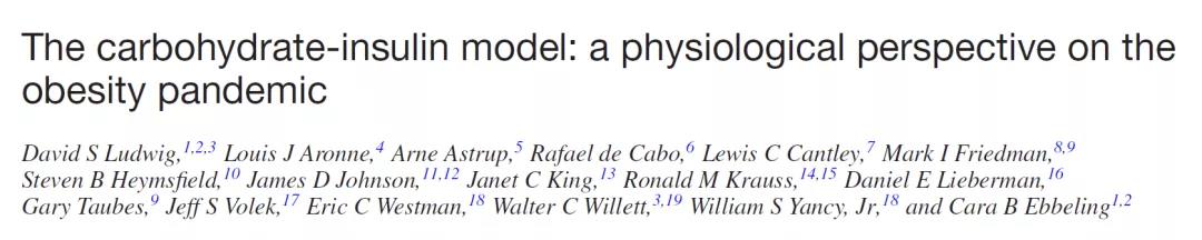 实际上,“碳水化合物-胰岛素模型”并不是一个最新提出的新模型,它最早可以追溯到1900年代,但是这篇由哈佛大学医学院、威尔康奈尔医学院、哥本哈根大学、美国国立卫生研究院等机构的17位国际公认的科学家、临床研究人员和公共卫生专家组成的作者团队发表的观点文章,是对“碳水化合物-胰岛素模型”迄今最为全面的表述。