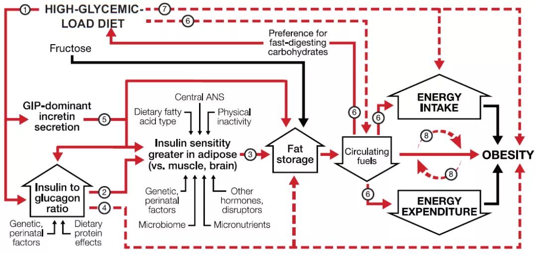 总的来说,这篇文章总结了支持“碳水化合物-胰岛素模型”的越来越多的证据。此外,作者还确定了一系列可检验的假设,以区分这两种模型以指导未来的研究。