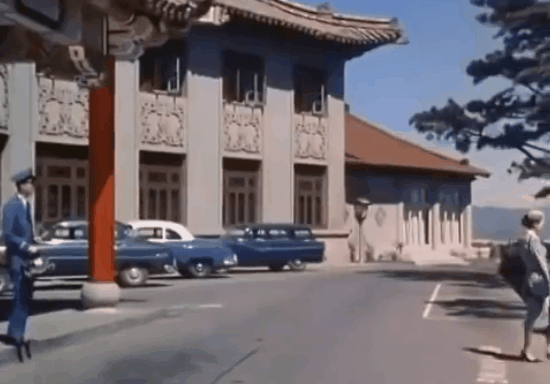 1959年上映的「空中小姐」剧照,那时饭店大门(第一代)还是日本鸟居