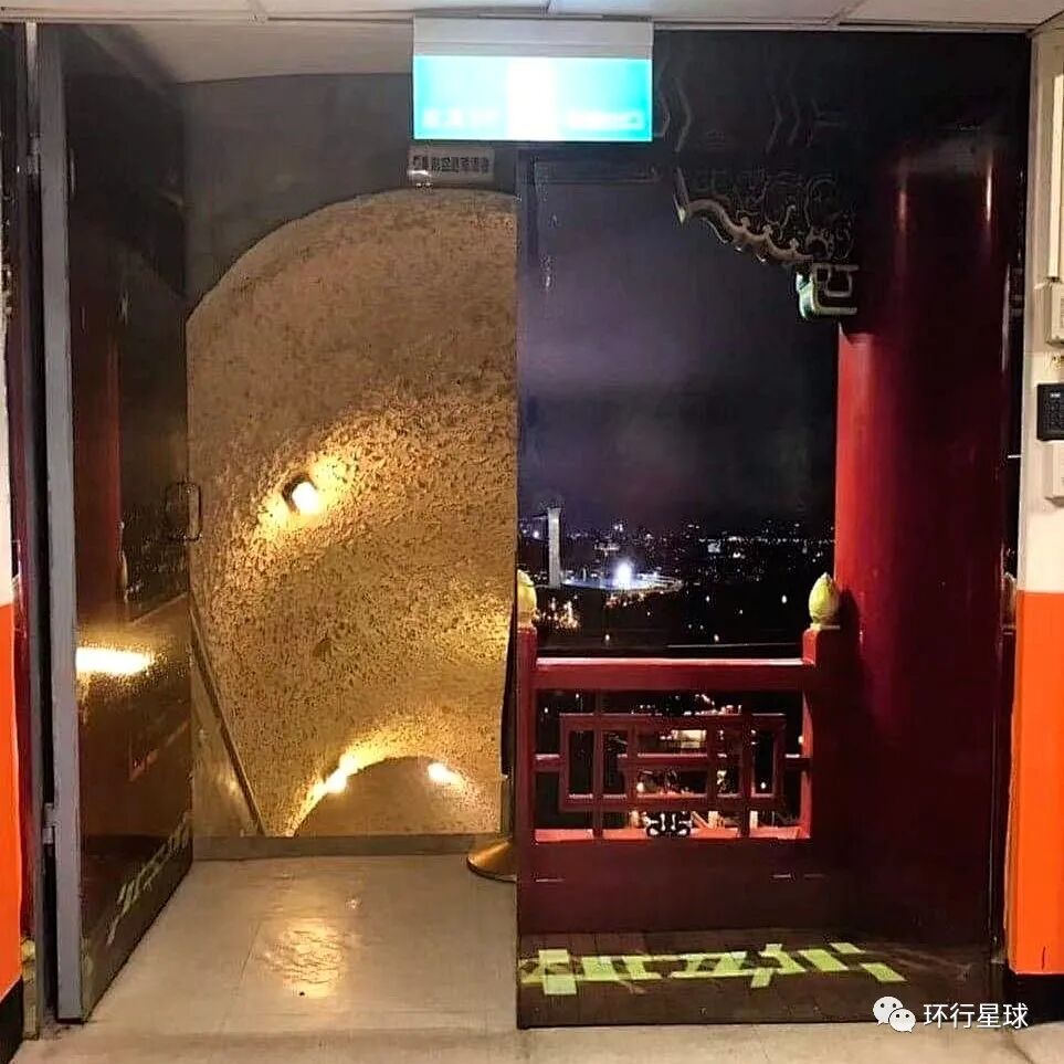 沿着陡峭湿滑的楼梯蜿蜒向下,昏黄的灯光让气氛变得有些紧张。这秘道总高度有85米,落差有六层楼那么高,但因不是笔直的关系,回头再看出口已不见,前面还没有尽头,仿佛走了很久。好不容易走到最底部,一扇铁门管得紧紧,导览说铁门之后就是圆山后山的密林,因此不能打开。游客到此止步,拍照留念后只能原路返回。