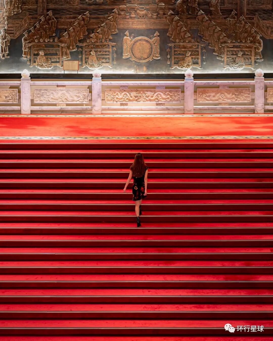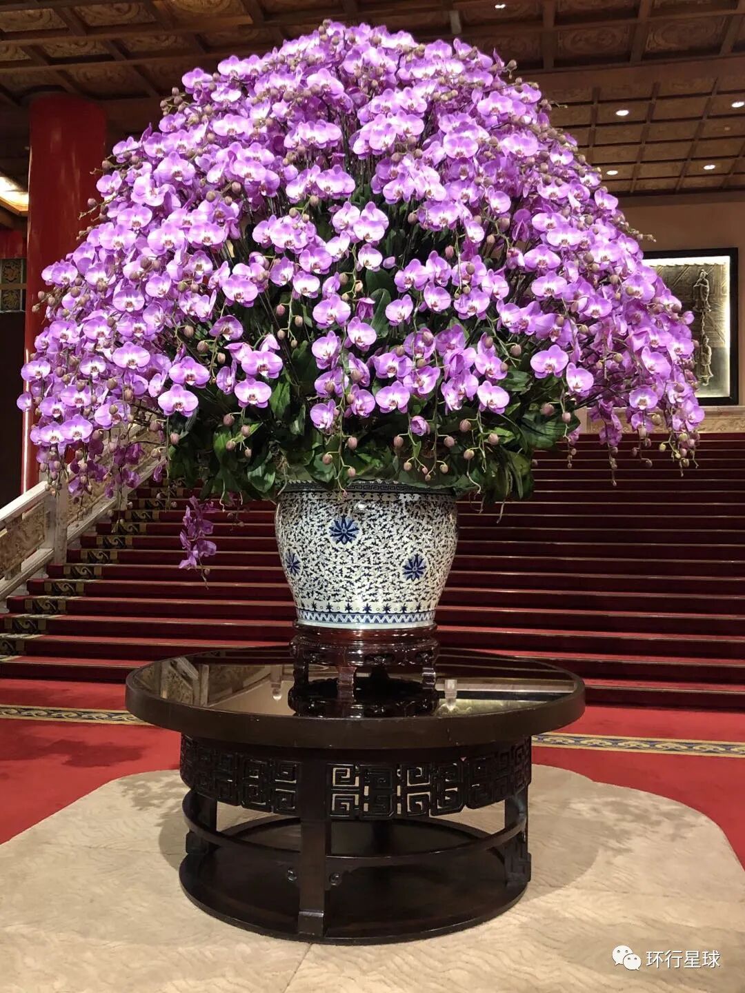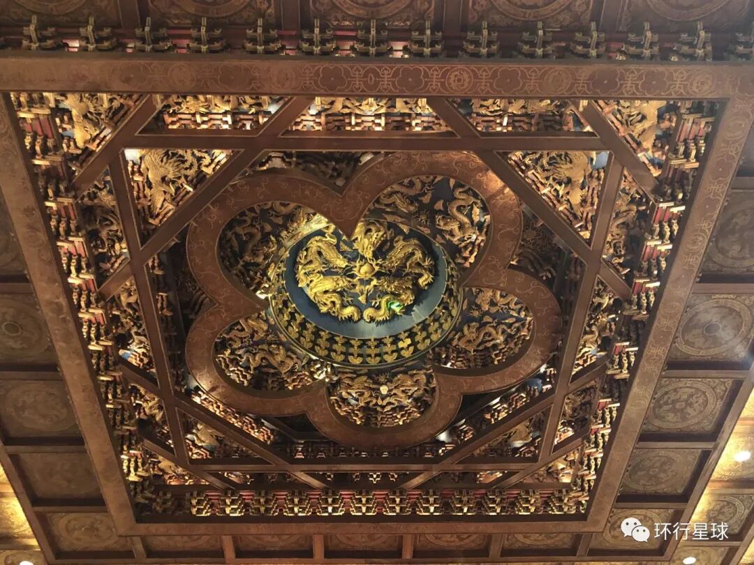 大厅藻井的正下方有一个两层的高台,上面摆放着很大的兰花花篮,是游客拍照留念的好选择。