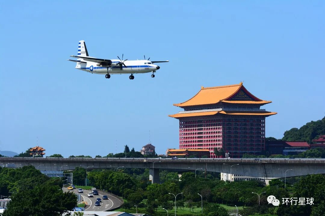 站在饭店大门前,请各位先回头看,台北盆地的美景可尽收眼底,不论白天或是夜晚都很迷人。顺着蜿蜒的基隆河,北台湾的门户——松山机场就在左边,时有飞机划过天空。